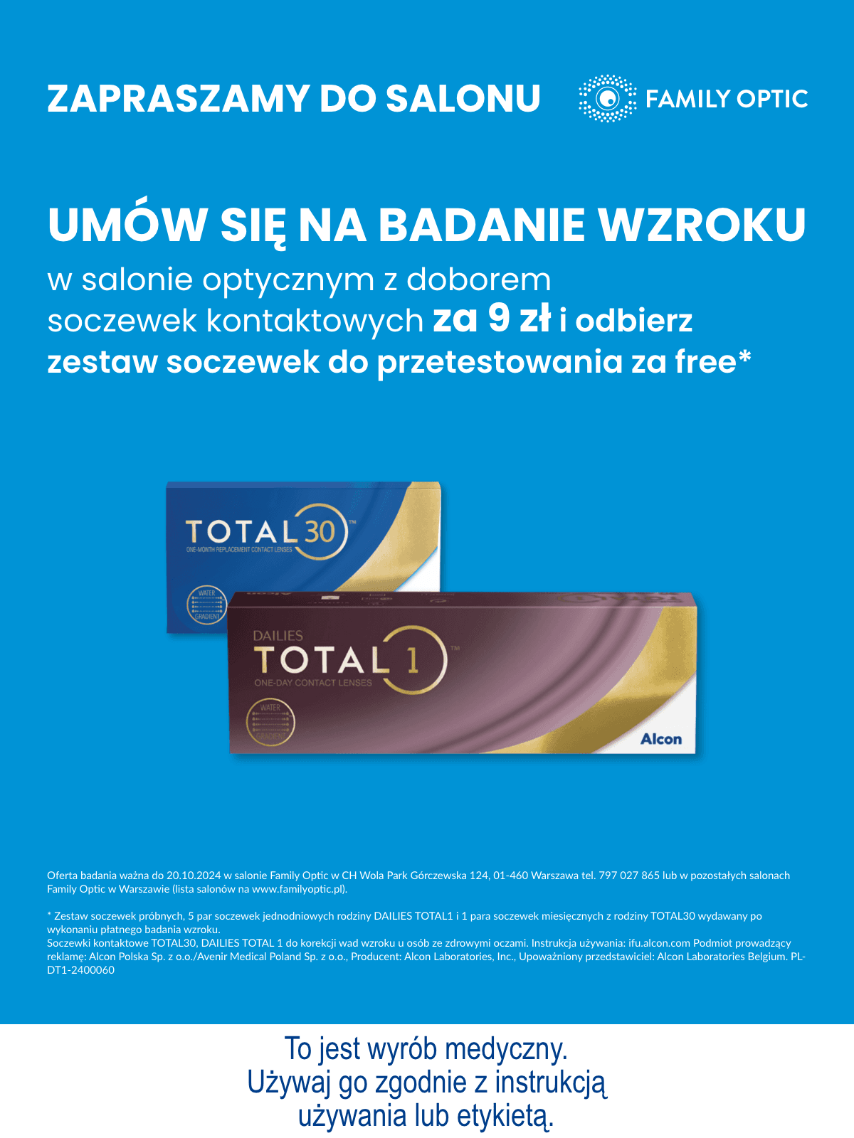 Zapraszamy również do salonu optycznego Family Optic na 1 piętrze i skorzystania z pełnego badania wzroku. Podczas wizyty eksperci pomogą w doborze soczewek kontaktowych