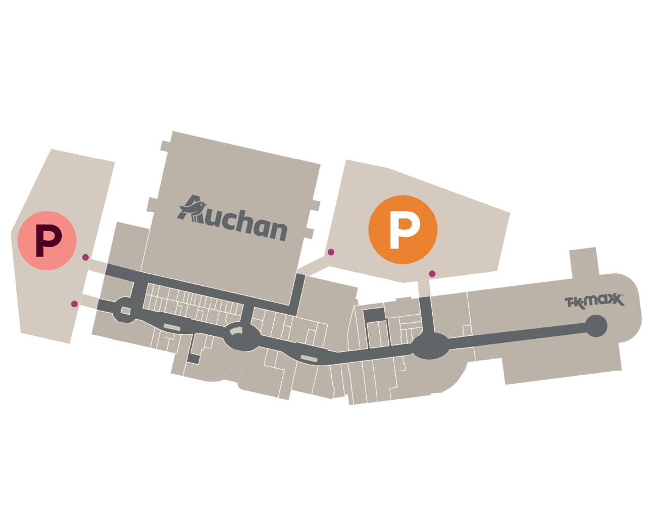 👉 The first and second entry to the parking lot within one day allow up to 2 hours of free parking. What does this mean? Your first entry for morning shopping at Auchan gives you 2 free hours. Your second entry on the same day for a quick fashion purchase? No problem – that’s also up to 2 hours free! The third and any subsequent entry remain free for up to 15 minutes, for example to pick up a parcel or collect your jacket from the dry cleaner.