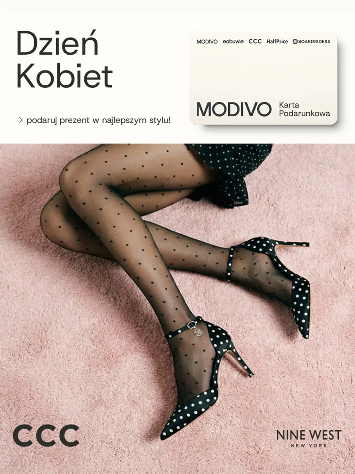 Umówmy się – wybór idealnego prezentu to nie lada wyzwanie! Trafienie w 'ten konkretny' odcień błękitu czy wymarzony fason butów bywa trudne. Dlatego mamy dla Ciebie rozwiązanie idealne na Dzień Kobiet: Kartę Podarunkową MODIVO! Ona wybiera swój wymarzony model, a Ty zbierasz laury za najlepszy prezent pod słońcem. Kartę Podarunkową MODIVO znajdziesz przy kasie. Wyjątkowy prezent dla wyjątkowej kobiety!