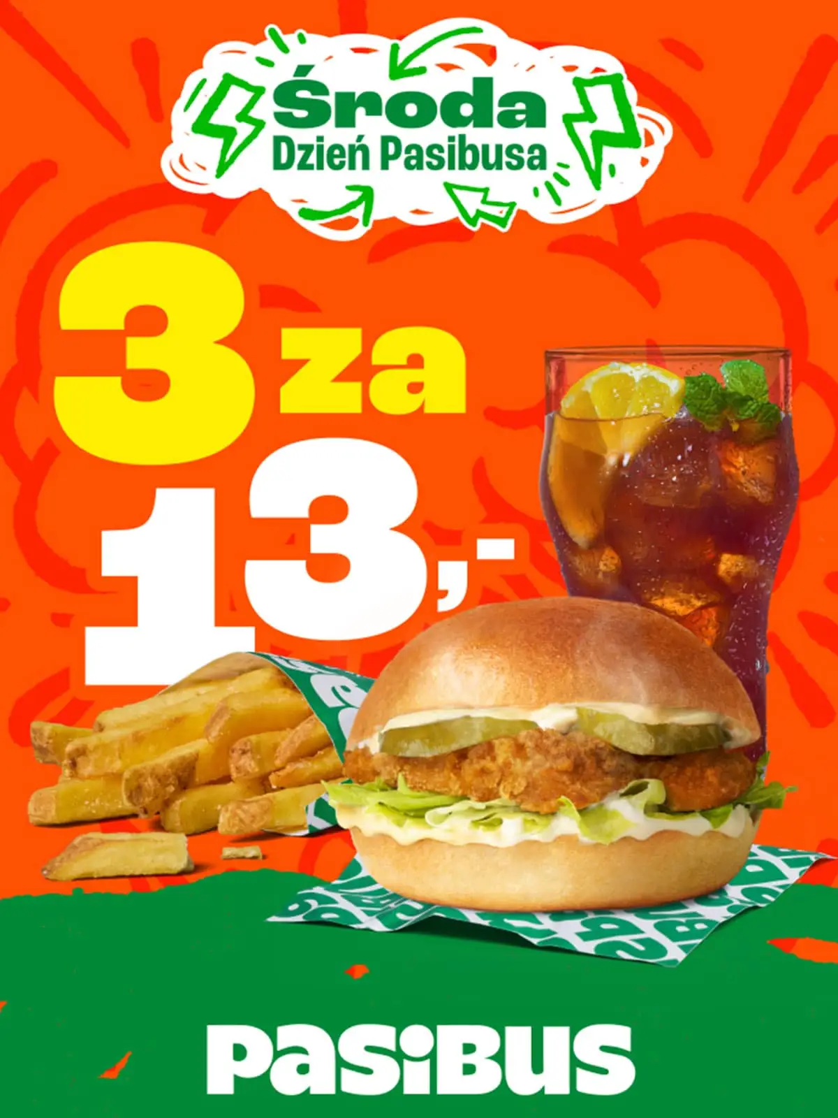 Cziks z kurczakiem w chrupiącej panierce, Frytki oraz Ice Tea za jedyne 13 ziko zgarniesz w każdym lokalu Pasibusa 💚