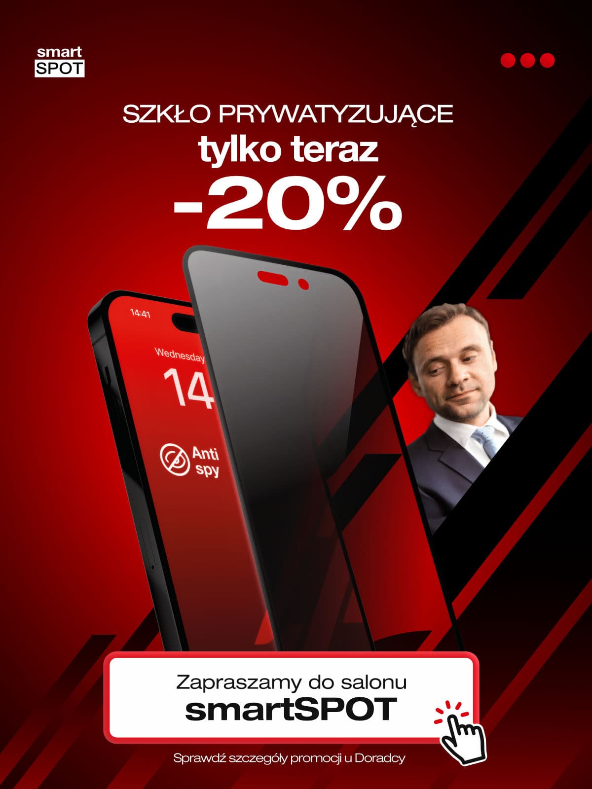 Wpadnij do salonu smartSPOT i zabezpiecz ekran swojego telefonu szkłem prywatyzującym 3D aż 20% taniej!