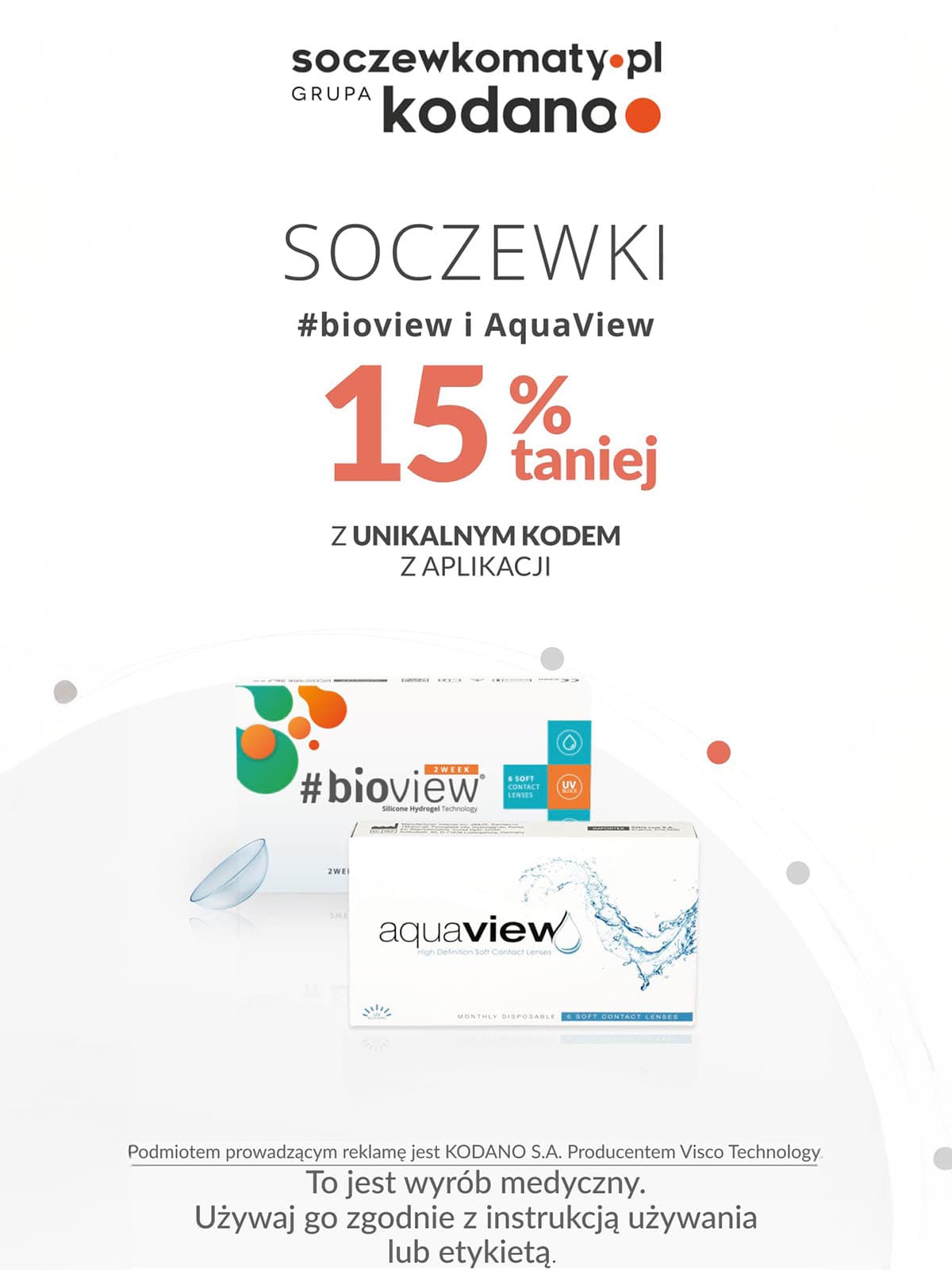 Z kodem z naszej aplikacji KODANO otrzymasz 15% rabatu na soczewki #Bioview i #Aquaview!