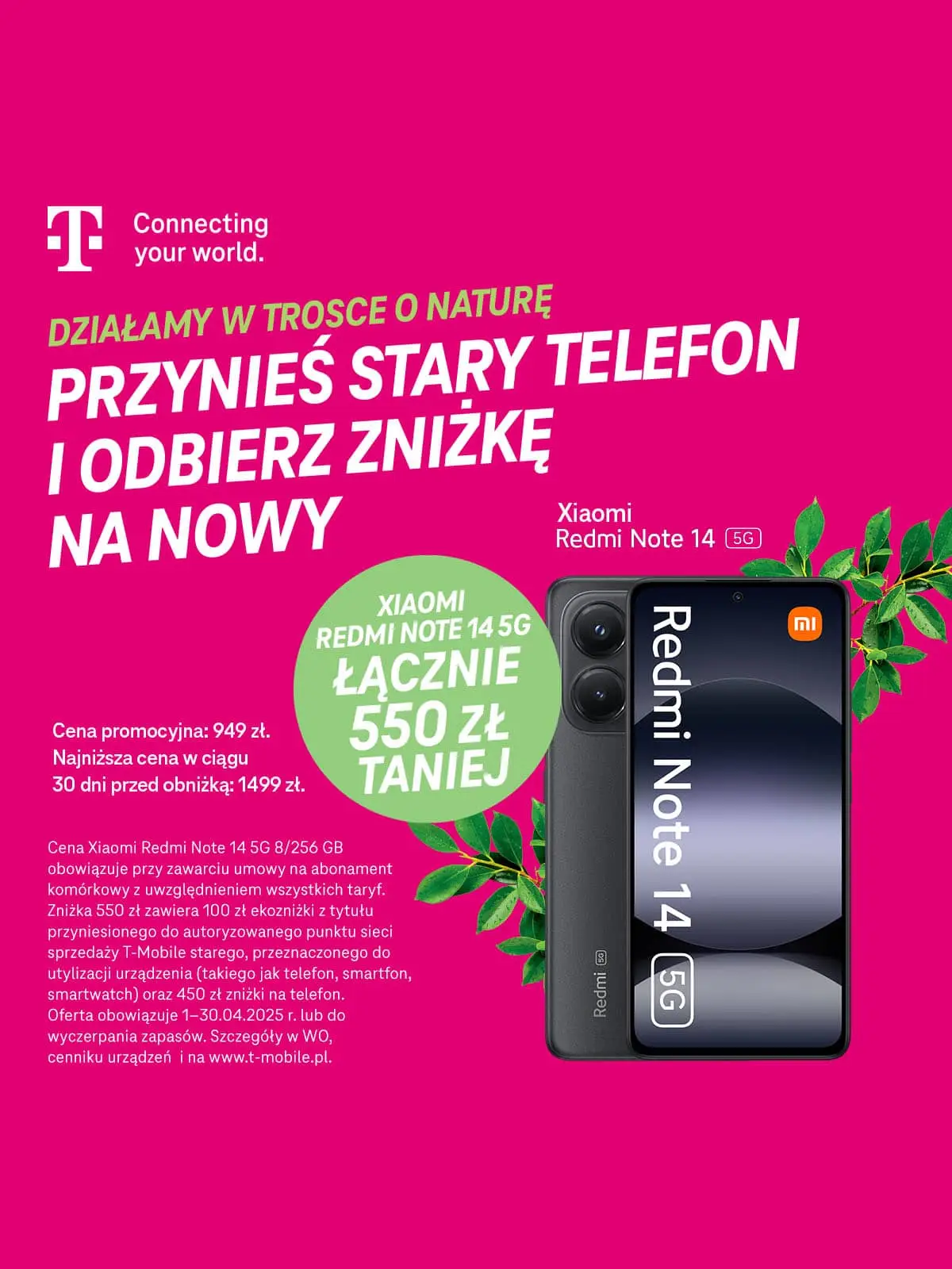 Działamy w trosce o naturę. Przynieś stary telefon i odbierz zniżkę na nowy. Oferta ważna do 30.04.2025 r.