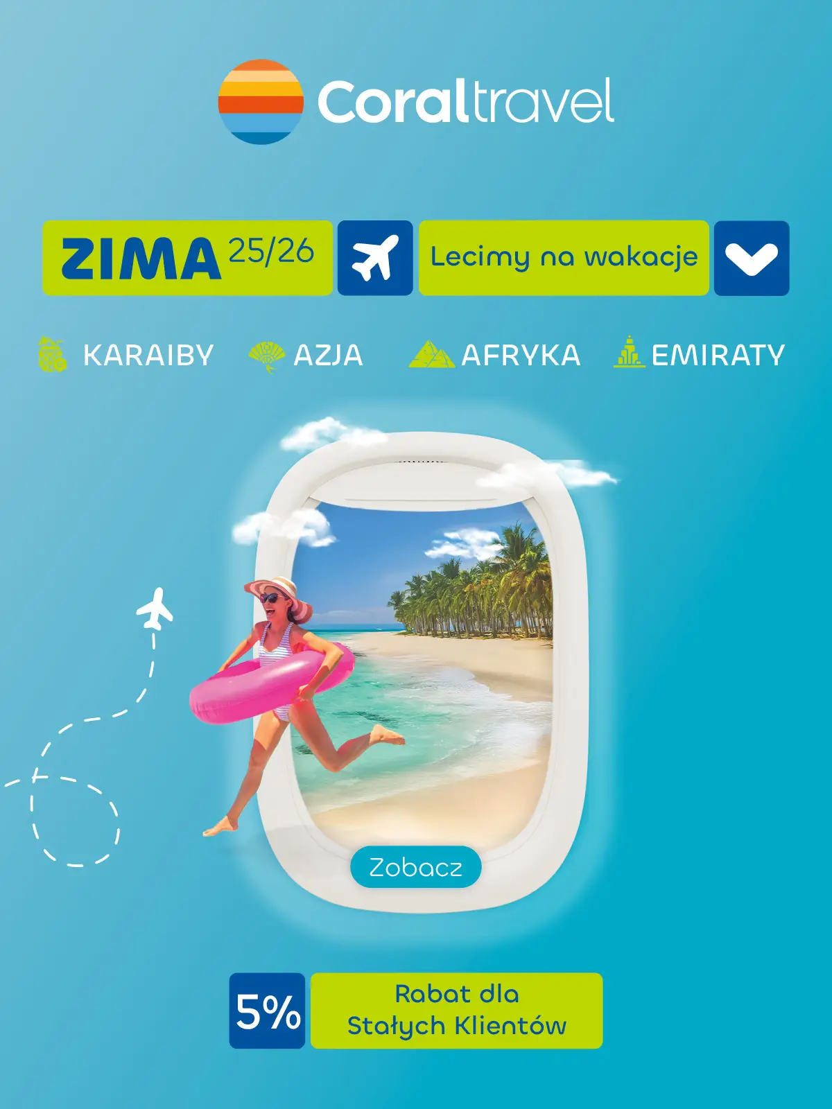 Zima 25/26 z Coral Travel właśnie wystartowała! Egzotyczne plaże, gwarantowane słońce i najlepsze hotele – czekają na Ciebie tam, gdzie minusowe temperatury nie mają wstępu.