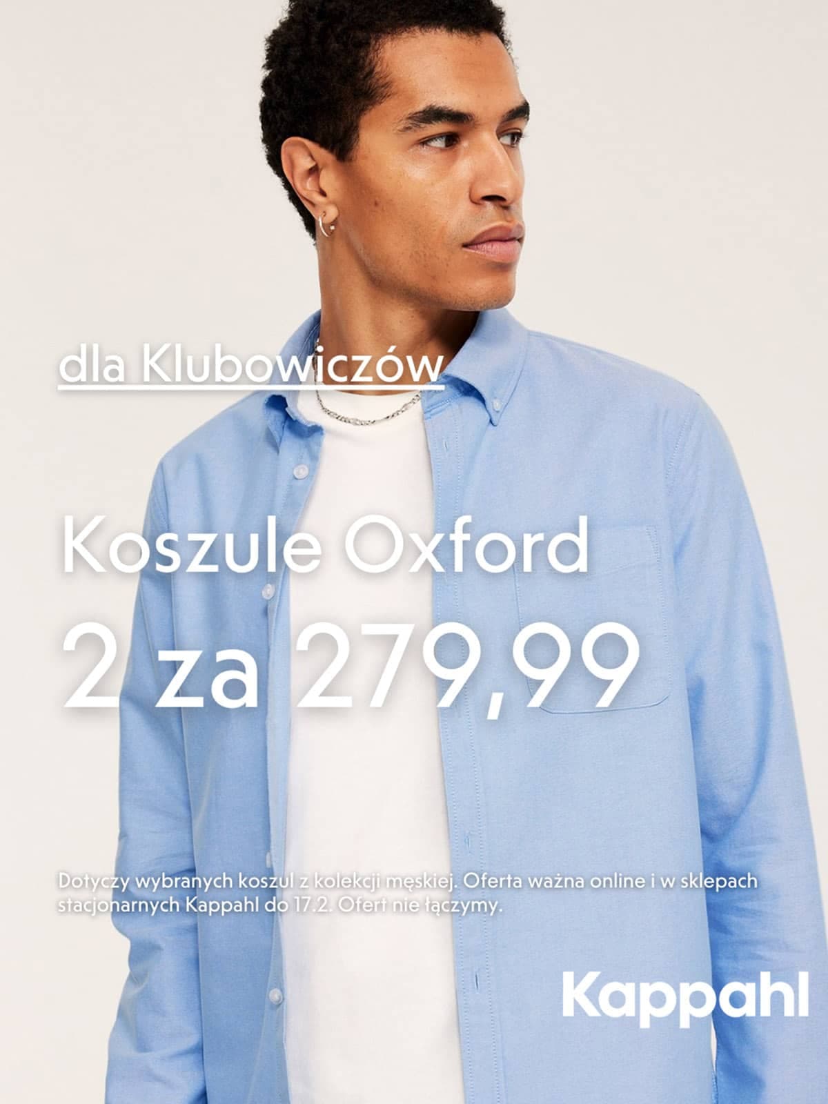 Dotyczy wybranych koszul z kolekcji męskiej. Oferta ważna online i w sklepach stacjonarnych Kappahl do 17.2 dla nowych i obecnych Klubowiczów. Ofert nie łączymy.