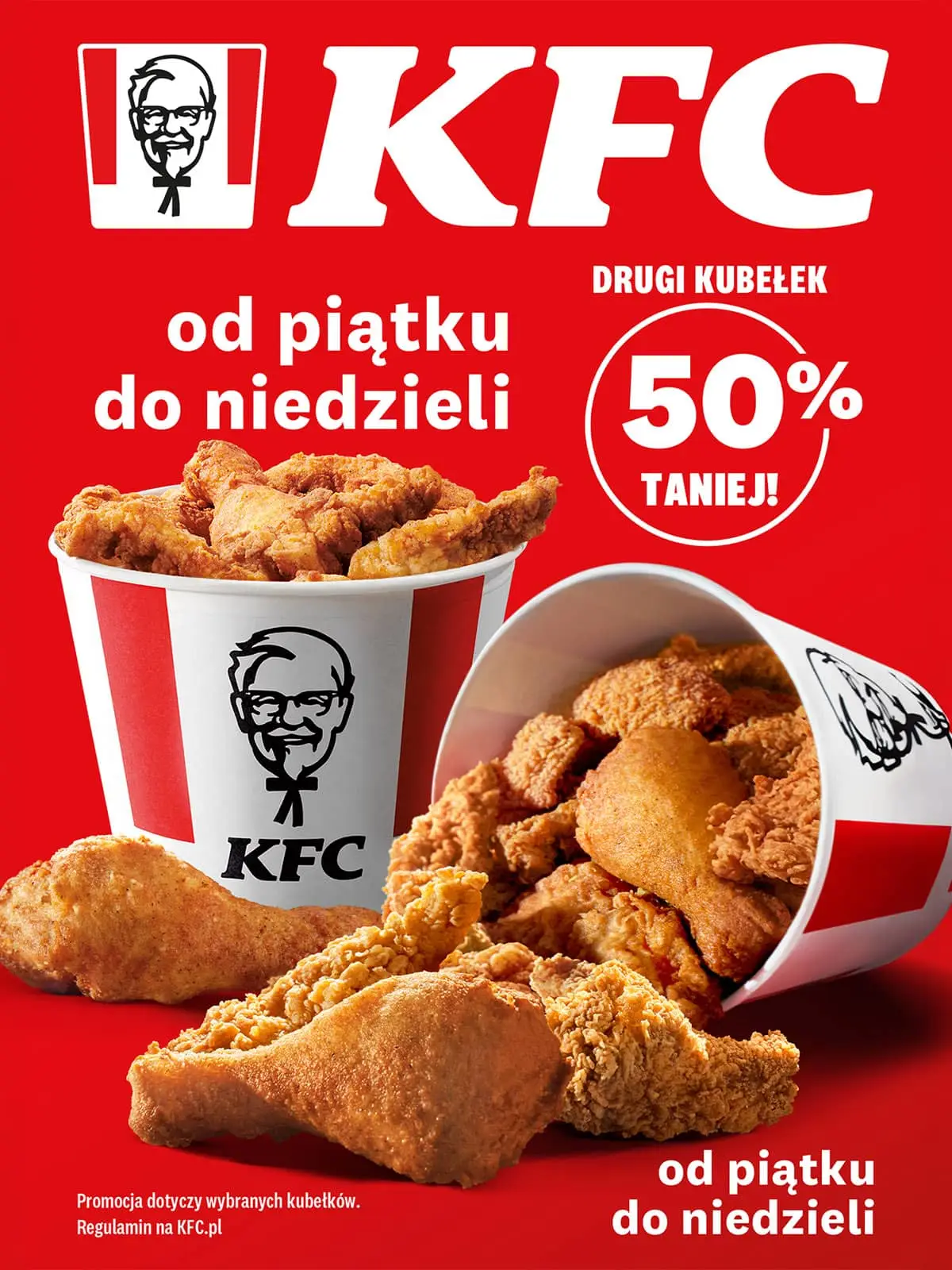 Teraz od piątku do niedzieli w KFC drugi kubełek 50% taniej!