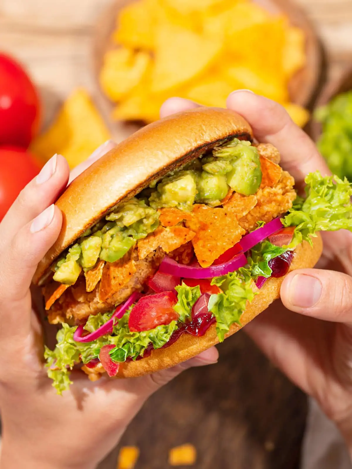 Klasyczny burger w kalifornijskim wydaniu. Delikatne awokado, wyrazisty sos chipotle, świeże warzywa i chrupiący kurczak. Całość zamknięta w idealnie podpieczonej, puszystej bułce, która z każdym kęsem przenosi Cię bliżej plaży.