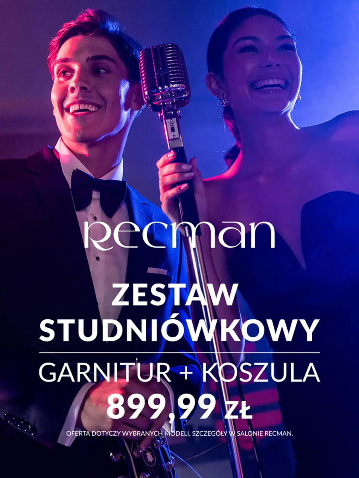 W Recman czeka na Ciebie zestaw: wybrany garnitur Racman + biała koszula w cenie 899,99 zł - dzięki niemu zrobisz świetne pierwsze wrażenie i z pełną swobodą wejdziesz na parkiet.