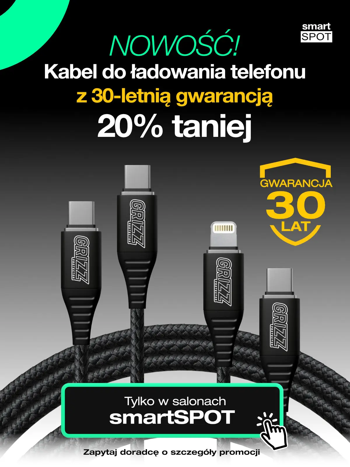 Teraz w smartSPOT możesz kupić kabel AramidCore aż 20% taniej i raz na zawsze pozbyć się problemu pękających, psujących się kabli. Do zobaczenia w smartSPOT!